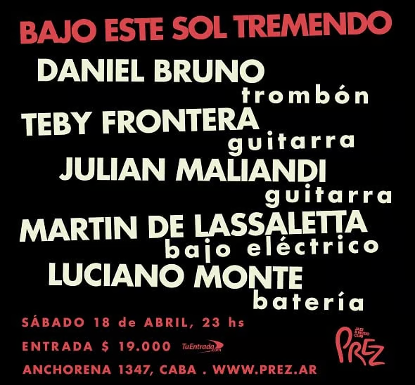 Daniel Bruno (trombon) Teby Frontera (guitarra) Julián Maliandi (guitarra) Martín De Lassaletta (bajo eléctrico) Luciano Monte (batería)