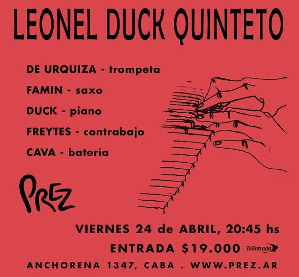 Juan Cruz De Urquiza (trompeta) Emma Famin (saxo) Leonel Duck (piano) Esteban Freytes (contrabajo) Juan Cava (batería)