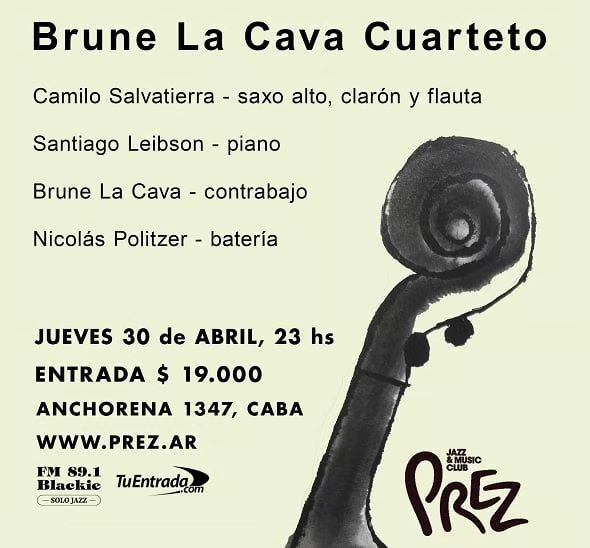 Camilo Salvatierra (saxo alto, claron, flauta) Santiago Leibson (piano) Brune La Cava (contrabajo) Nicolás Politzer (batería)