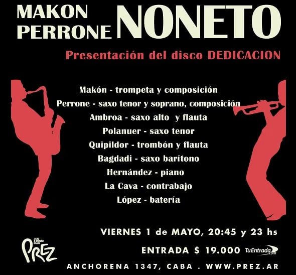 Fidel Makón (trompeta) Tomás Perrone (saxo tenor y soprano) Federico Ambroa (saxo alto, flauta) Martín Polanuer (saxo tenor) Lautaro Quipildor (trombón) Milena Bagdadi (saxo barítono) Pia Hernandez (piano) Brune La ... Leer más