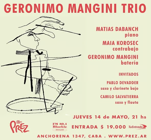 Matías Dabanch (piano) Maia Korosec (contrabajo) Gerónimo Mangini (batería) INV: Pablo Devadder (saxo, clarinete bajo) Camilo Salvatierra (saxo, flauta9