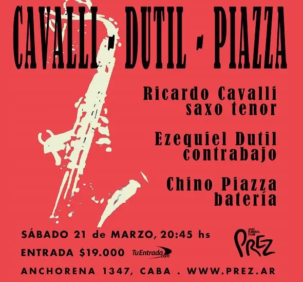 Ricardo Cavalli (saxo tenor) Ezequiel Dutil (contrabajo) Chino Piazza (batería)