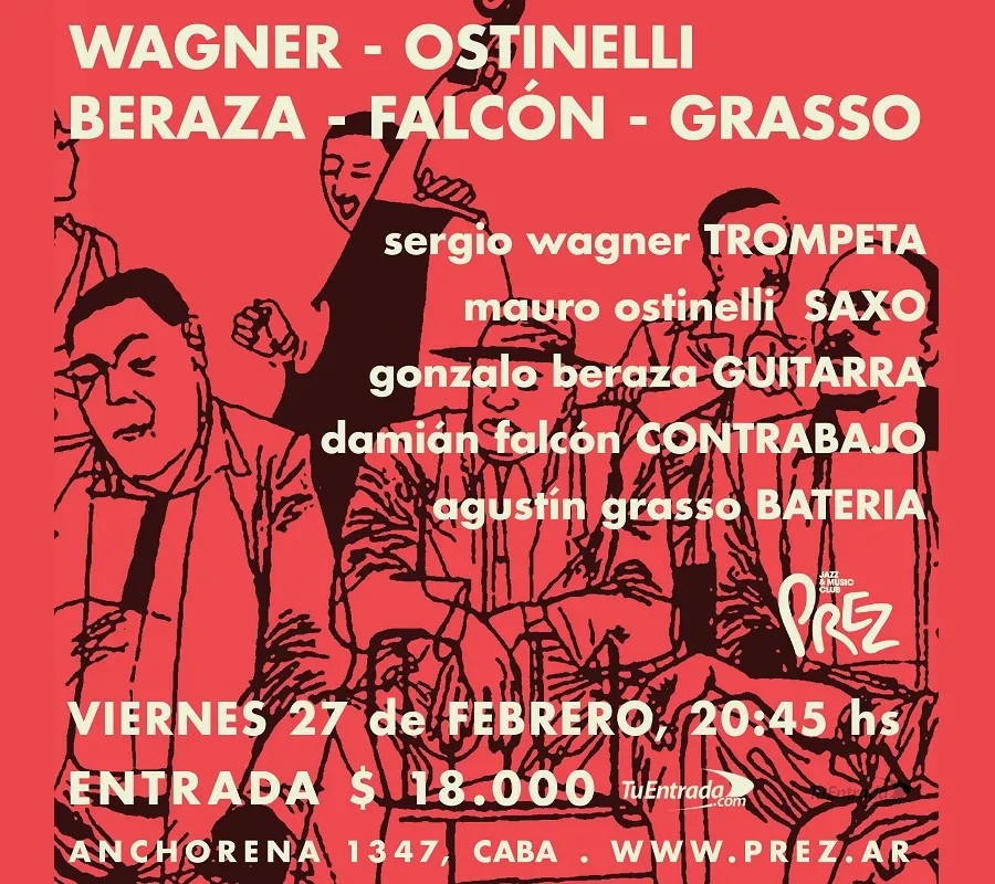 Sergio Wagner (trompeta) Mauro Ostinelli (saxo) Gonzalo Beraza (guitarra) Damián Falcón (contrabajo) Agustín Grosso (batería)