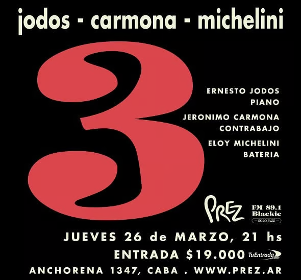 Ernesto Jodos (piano) Jerónimo Carmona (contrabajo) Eloy Michelini (batería)