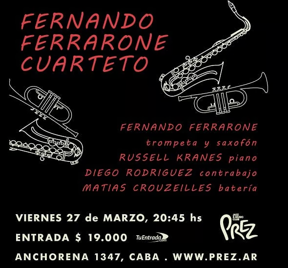 Fernadno Ferrarone (trompeta, saxo) Russell Kranes (piano) Diego Rodriguez (contrabajo) Matías Crouzeilles (batería)